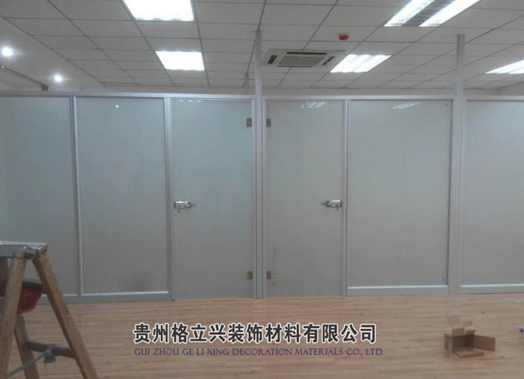 1、實體隔斷:以覆膜石膏板、覆膜細木工板、三聚氰胺板、彩鋼板等為板材,以鋁鎂合金型材為骨架,配合專用連接鋼件組裝而成!
